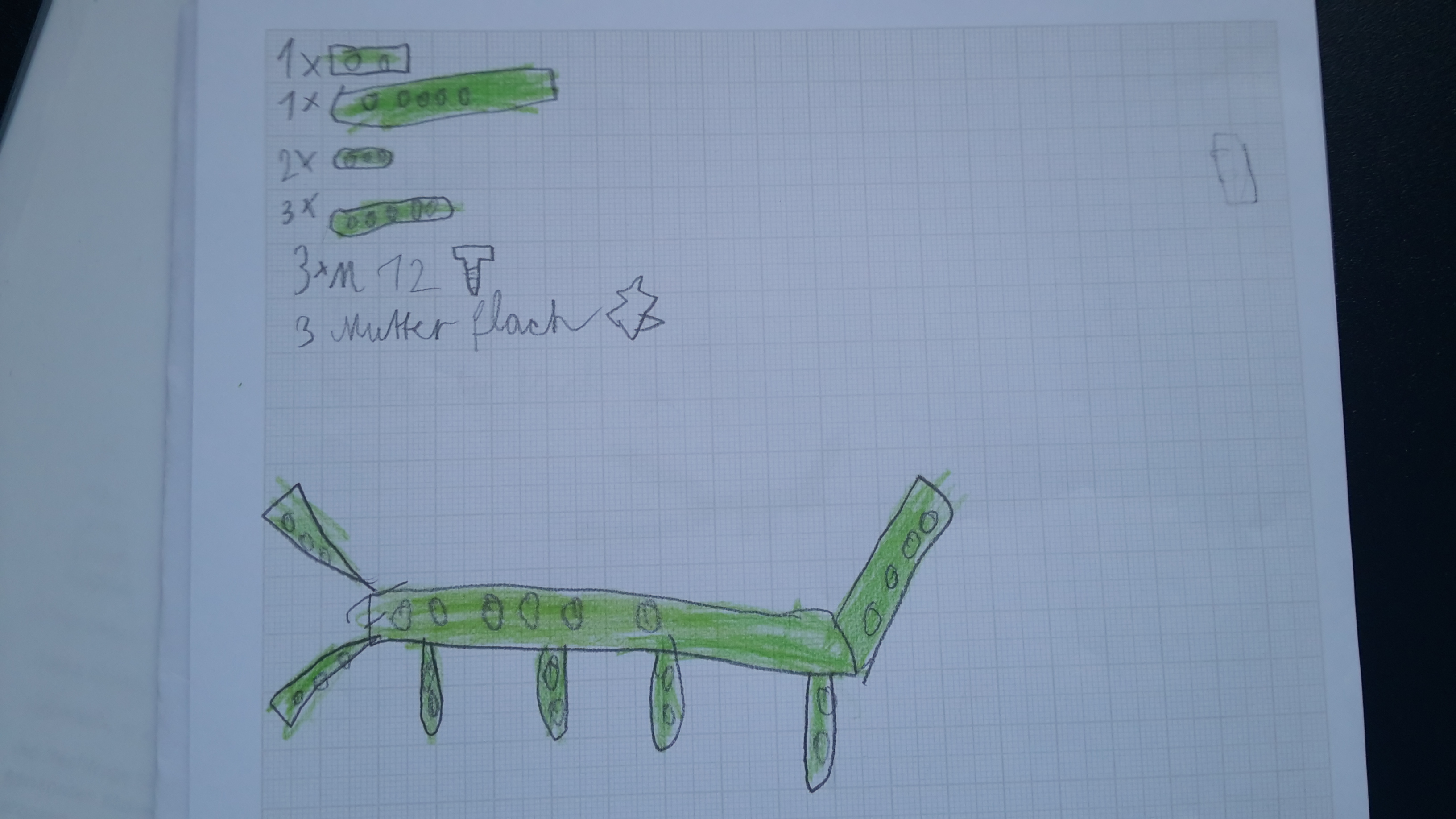 Luca: „Da die Farbe ja schon vorgegeben war, nämlich grün, fand ich es klasse, dass wir keine Vorgaben hatten und einfach drauf „los bauen“ konnten. Die Handgeräte kannten wir ja schon von den Arbeiten an unseren Schlüsselanhängern.“